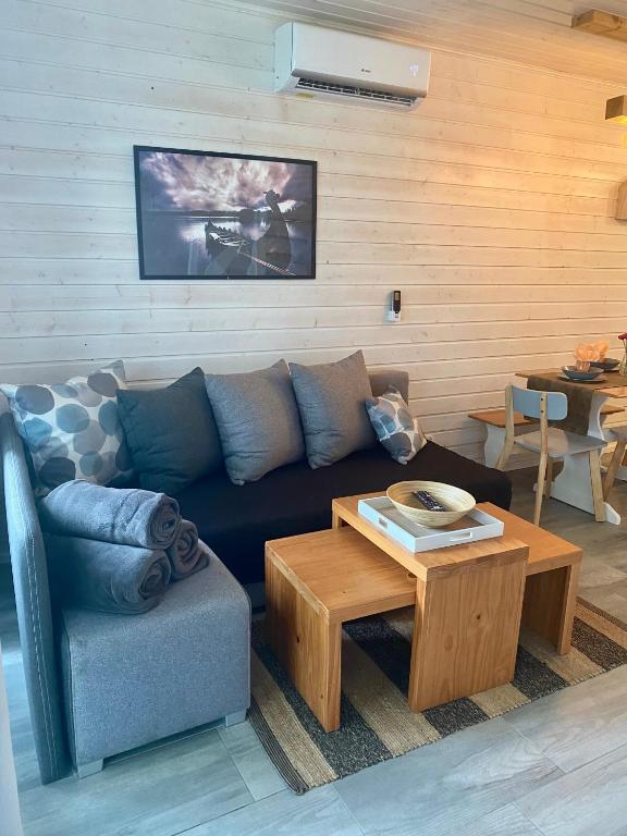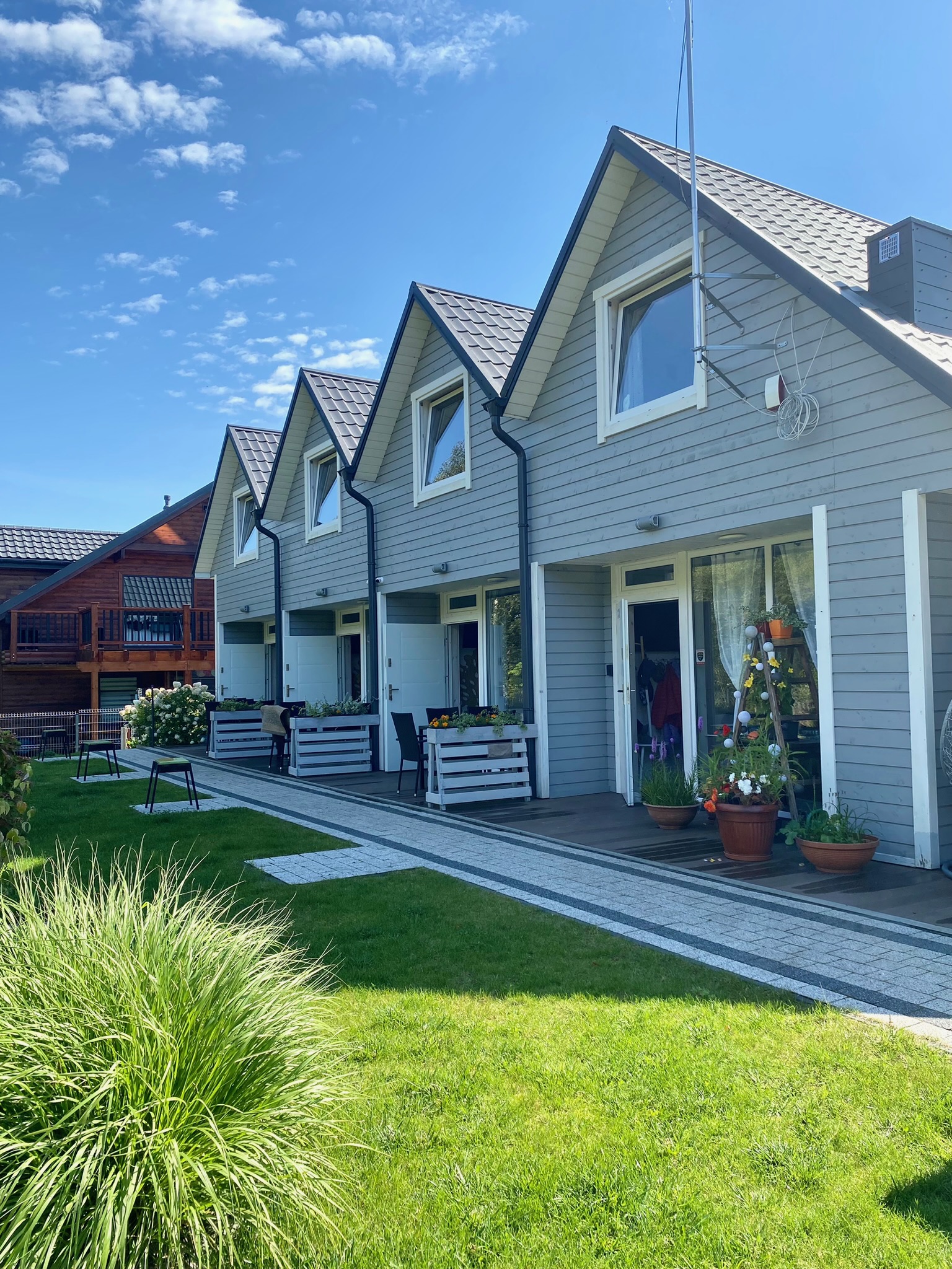 Każdy domek wyposażony jest w przestronny salon, w pełni funkcjonalną kuchnię, dwie sypialnie oraz taras z grillem